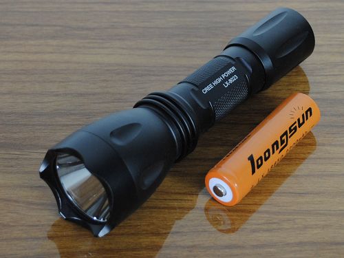 Super Bright Q5 LED Flashlight 8023, water proof IPX-8 design, high definition vacuum coating aluminum alloy reflector, is perfect in tactical using. It’s widely used in searching, caving, camping, hunting, fishing, diving, hiking, sea rescue, etc. as a spare light for automobiles, and as a self defend weapon.