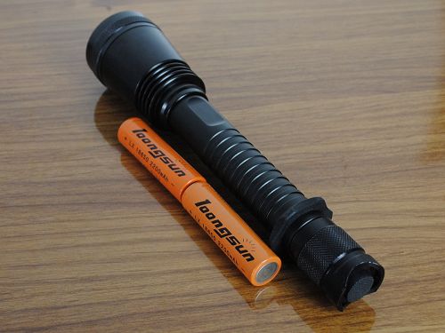 Super Bright T6 LED Flashlight T608, water proof IPX-8 design, high definition vacuum coating aluminum alloy reflector, 5 function modes, perfect in tactical using. It’s widely used in searching, caving, geological prospecting, rescue, camping, and hunting. It also used as a spare light for automobiles, and a self defend weapon.